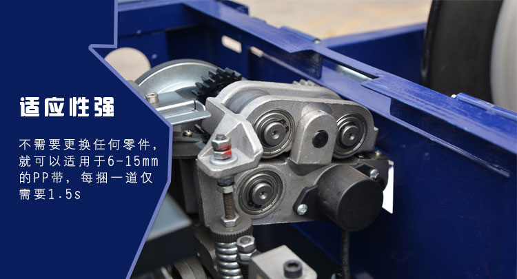 SK-3型低臺(tái)型打包機(jī)檢驗(yàn)調(diào)試更簡(jiǎn)單方便,且退帶離合首家采用光電控制