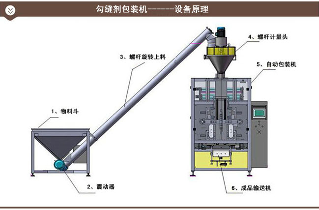 接通電源將溫度設(shè)置恒溫→設(shè)置包裝機(jī)參數(shù)(制袋尺寸及包裝重量)→人工上料到儲(chǔ)料斗振動(dòng)下料至螺桿提升機(jī)→螺桿計(jì)量器→包裝機(jī)→打印生產(chǎn)日期→制袋→充填物料→充氣→封合包裝→切斷→包裝成品輸出全過(guò)程;