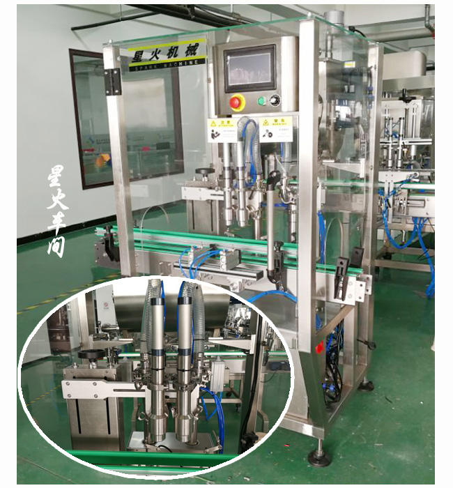 雙頭顆粒醬料灌裝機是在原有的灌裝機技術(shù)的基礎(chǔ)上,進行改造和創(chuàng)新設(shè)計的產(chǎn)品,主要針對粘稠并帶有顆粒類的醬狀物料灌裝而設(shè)計;主要用于麻辣醬、豆辨醬、鮮辣醬、香辣醬、牛肉醬、豆豉及郫縣豆醬等醬類灌裝。