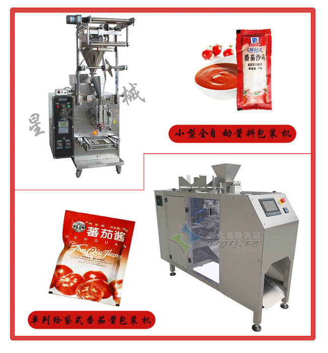 每到夏季,是番茄豐收的季節(jié),它即可用作為蔬菜,也可以作為水果,除了含有豐富的維生素C外,番茄紅素也是目前已知的抗氧化能力較強(qiáng)的物質(zhì),在各種水果蔬菜當(dāng)中當(dāng)以番茄的含量較高。對降低膽固醇,清澈血液,加快新陳代謝,防止肌膚干燥,抗衰老有明顯效果;番茄醬作為番茄的深加工產(chǎn)品,近年來也備受消費(fèi)者的青睞,作為一種醬料,也是很多菜肴如糖醋里脊、糖醋魚不可缺少的,在我們?nèi)タ系禄湲?dāng)勞等吃薯?xiàng)l時(shí)也會(huì)發(fā)現(xiàn),每份薯?xiàng)l都會(huì)配有2包番茄沙司,我們常見的番茄醬包裝大都是紅色的甚是漂亮,設(shè)計(jì)也很吸引人,這么漂亮的包裝您想到它是怎樣包裝的了么?不用猜了,當(dāng)然就是醬料包裝機(jī)