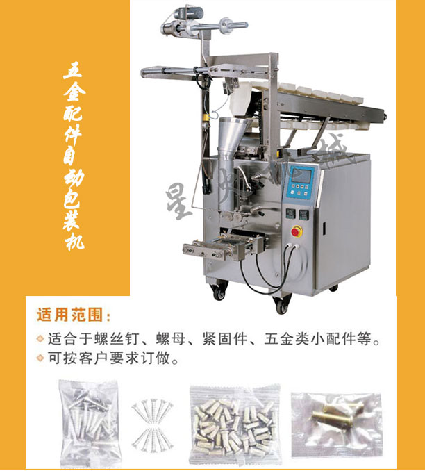 五金配件作為工業(yè)制造做的配套產(chǎn)品,它的用處及其廣泛,對(duì)于這些小小的各式各樣的配件,因?yàn)槠贩N多,數(shù)量雜等問題對(duì)于包裝卻是很費(fèi)時(shí)間的;星火自動(dòng)包裝機(jī)將自動(dòng)化技術(shù)應(yīng)用到這一領(lǐng)域,推出的鏈斗式自動(dòng)包裝機(jī)完美解決了這一難題;不僅可以讓整個(gè)包裝過程實(shí)現(xiàn)了勞動(dòng)力的解放,并且包裝效率是非常高的;還可以多種配件混合包裝、能滿足不同生產(chǎn)企業(yè)的需求。下面小編就帶領(lǐng)大家詳細(xì)的了解一下這款五金配件自動(dòng)包裝機(jī)