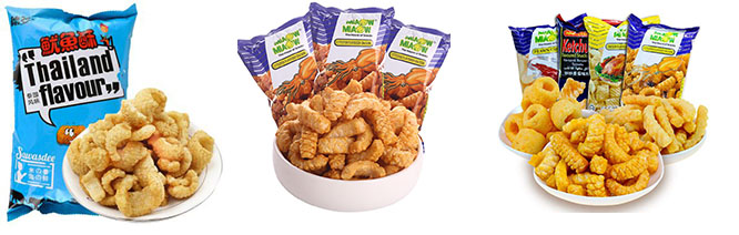 魷魚酥膨化食品自動包裝機包裝樣品展示