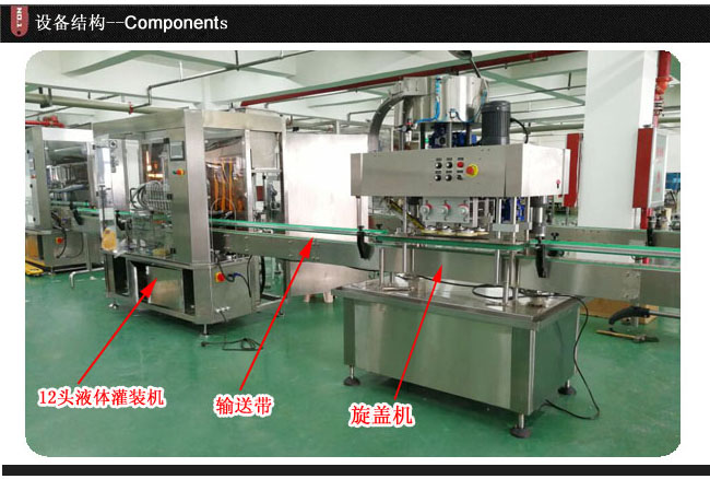 1、該生產(chǎn)線具有12個灌裝頭(可根據(jù)客戶的實際生產(chǎn)需求增減),灌裝精準,不滴漏