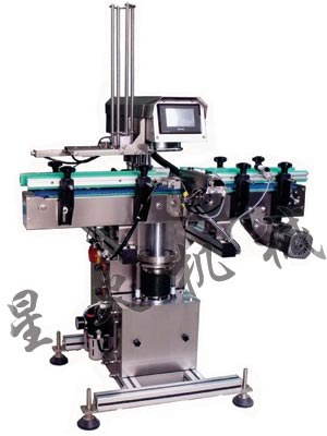 當(dāng)真空傳感器檢測得的數(shù)值達(dá)到設(shè)定數(shù)值時,托盤把瓶子向上托起,同時旋蓋機頭開始旋轉(zhuǎn)。當(dāng)瓶口與瓶蓋接觸時,托盤底板開始受到到向下壓力,托盤上的托爪機構(gòu)會把瓶身夾緊,同時蓋子頂面和硅膠旋蓋盤面之間也受到相等的壓力,旋蓋盤通過摩擦向蓋子傳遞扭蓋力矩,使蓋子的鉤爪沿瓶口螺紋旋入,旋蓋阻力增大時,旋蓋盤會停止轉(zhuǎn)動。本機型采用定扭力控制旋蓋的,扭力通過位于機身側(cè)面的氣壓旋鈕調(diào)節(jié)。