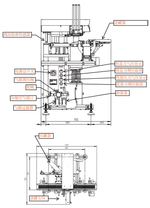 進罐機臺高度:進罐平面高度*低830 毫米。