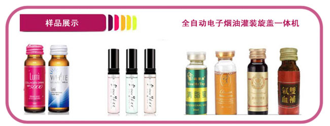 全自動(dòng)電子煙油灌裝機(jī)--煙油灌裝加塞旋蓋機(jī)主要適用于50毫升以內(nèi)電子煙油、滴眼液、指甲油、眼影、精油等產(chǎn)品的自動(dòng)灌裝、加塞和旋蓋。